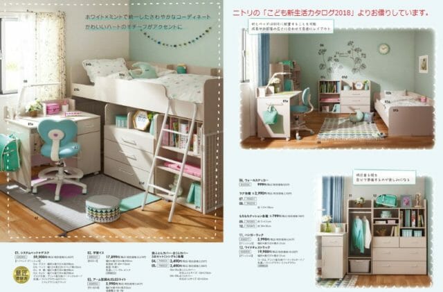 よくよくカタログを見ると、家具にはミントグリーンは一切使ってないんです。娘に騙されるところでした。