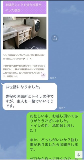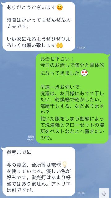 ▼お打合せ後に、お聞きしそびれちゃったことをLINEでやりとり。