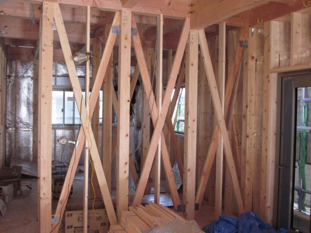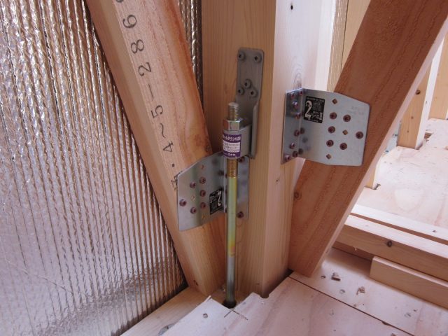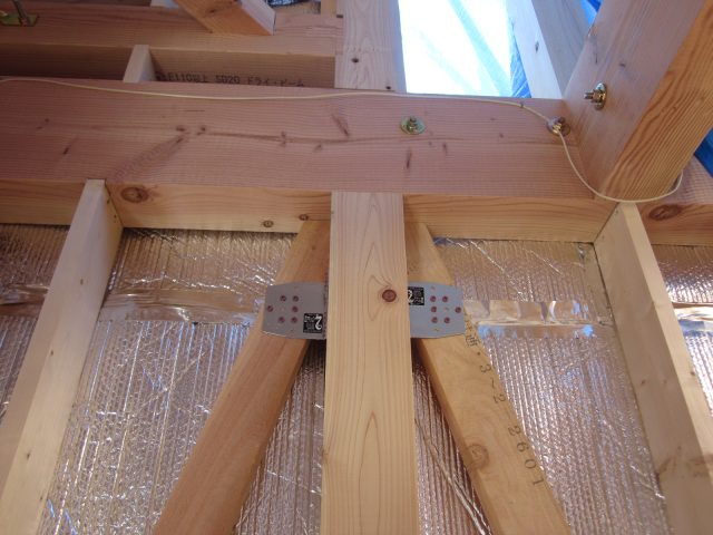 この中間検査では設計図通りに筋交いやアンカーボルト等の金物が取り付けられているかを確認してもらいます。