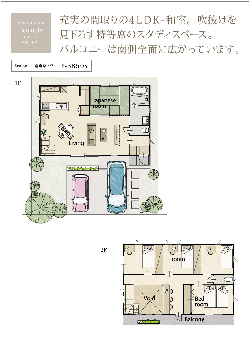 今回ご紹介する間取りプランは、エアコンよりも、窓からそよぐ風やお日様の暖かさが好きという自然派ライフスタイルの方の為に生まれたプラン Ecologia ~エコロジア~ のご紹介。