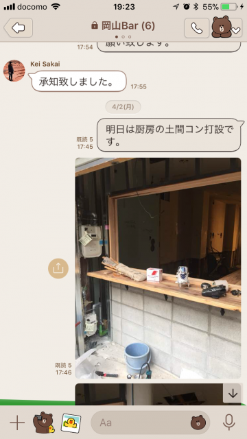 現場の様子も施工中の写真を撮ってLINEにUPし、状況を把握して頂けます。