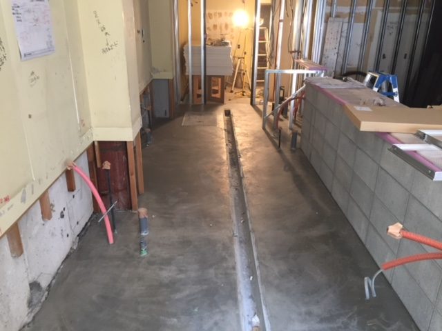 一昨日は、カウンターに壁のボード、昨日は厨房の土間コンと着々と現場は進んでおります。