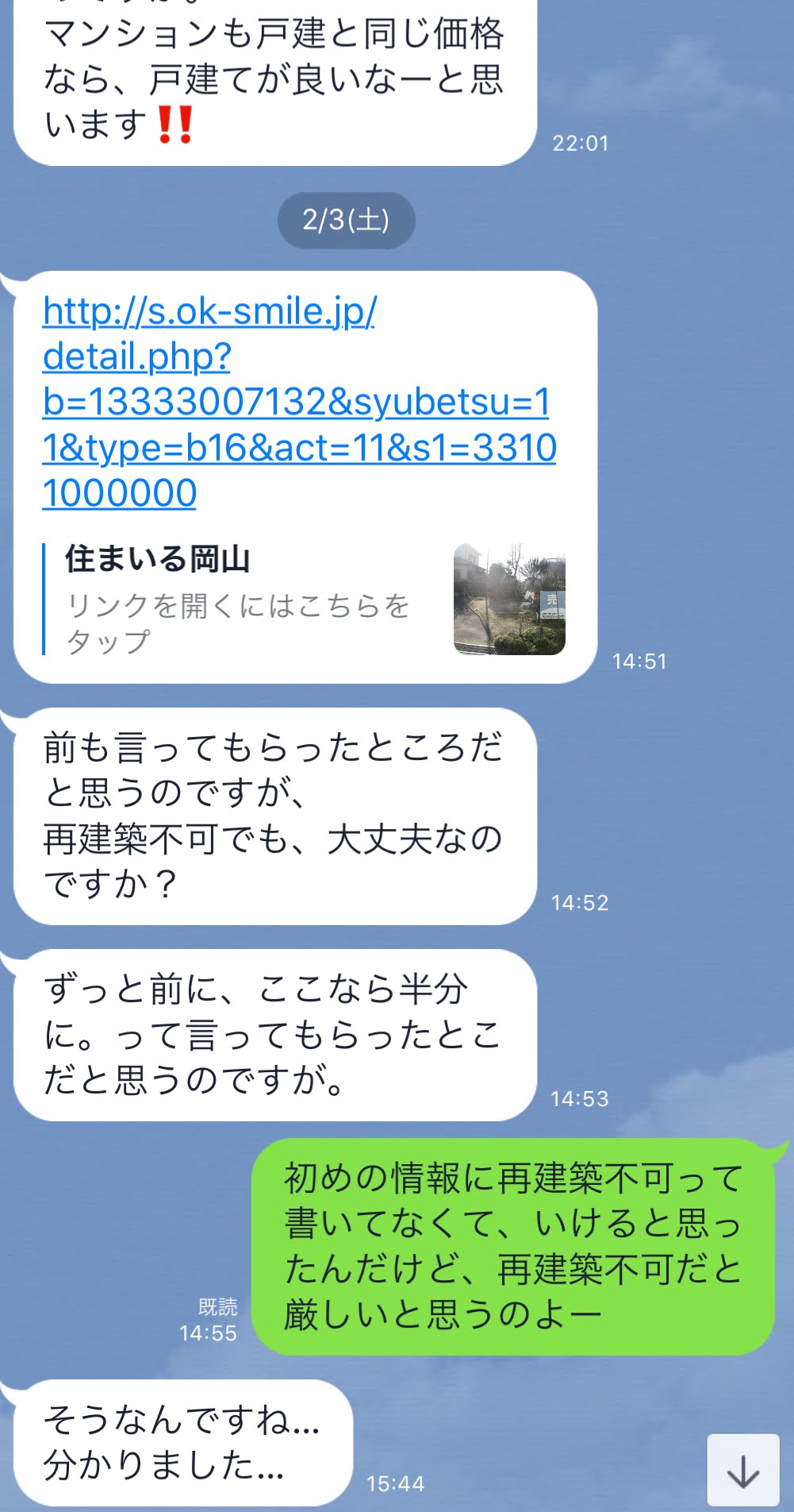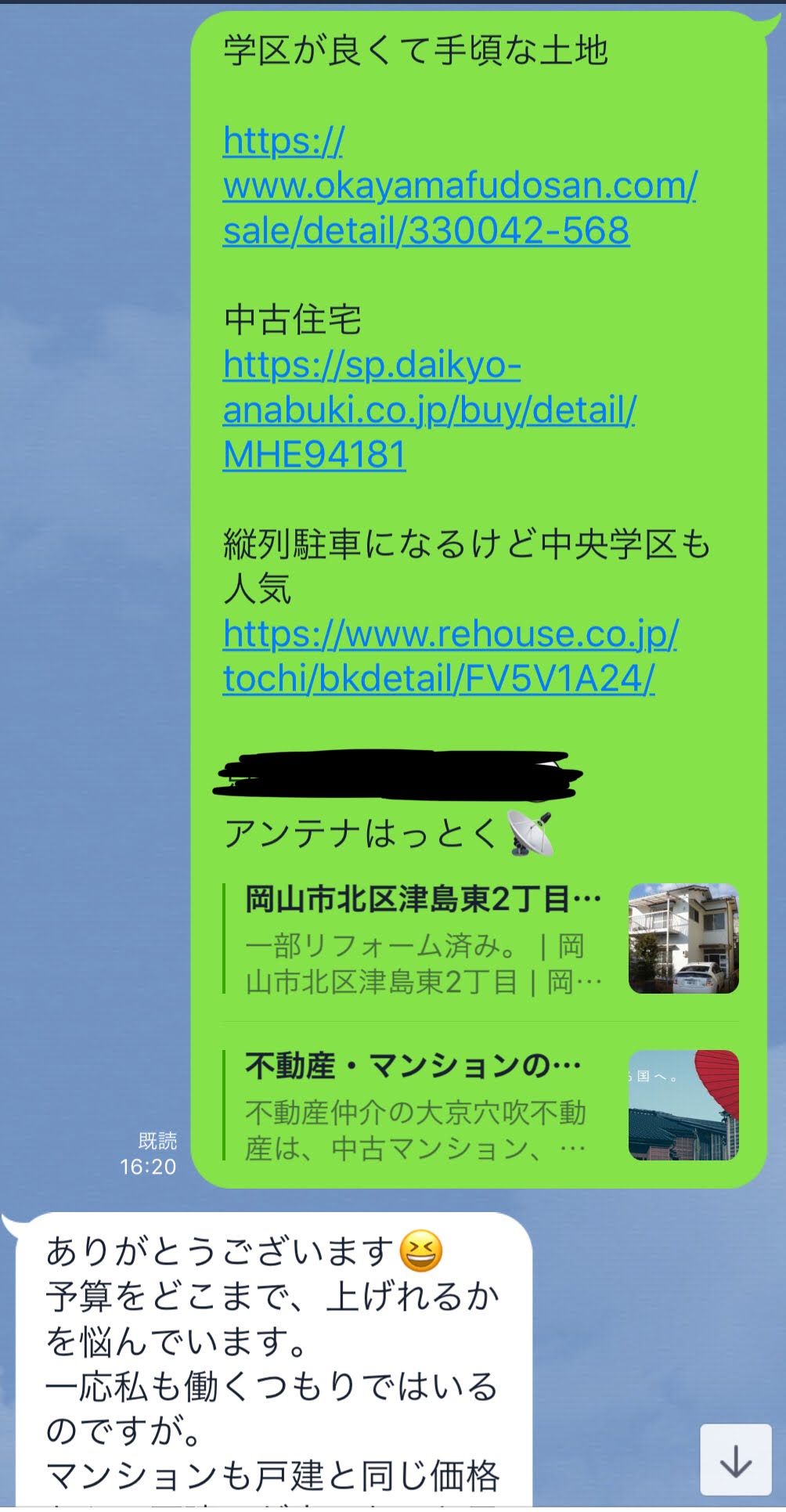 「山本様は家自体にこだわりをお持ちなので、中古住宅より土地から探して新築されたほうがいいと思います。」と、危うく遠回りするのをストップしてくれました。そして、いくつか物件を紹介くださり、でも、やっぱり他の不動産屋さんと同じでこっちから連絡しないと、動いてくれないこともあったのですが、その方を頼りにしたので、ネットで見たのを「これどうですか?」って電話して、そうすると、その土地はオススメかどうか、やめた方がいいですとか、正直に教えてくれたり、、、でだんだん仲良くなったのです。