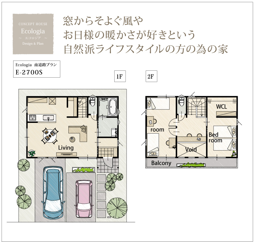 今回ご紹介する間取りプランは、エアコンよりも、窓からそよぐ風やお日様の暖かさが好きという自然派ライフスタイルの方の為に生まれたプラン Ecologia ~エコロジア~ のご紹介。