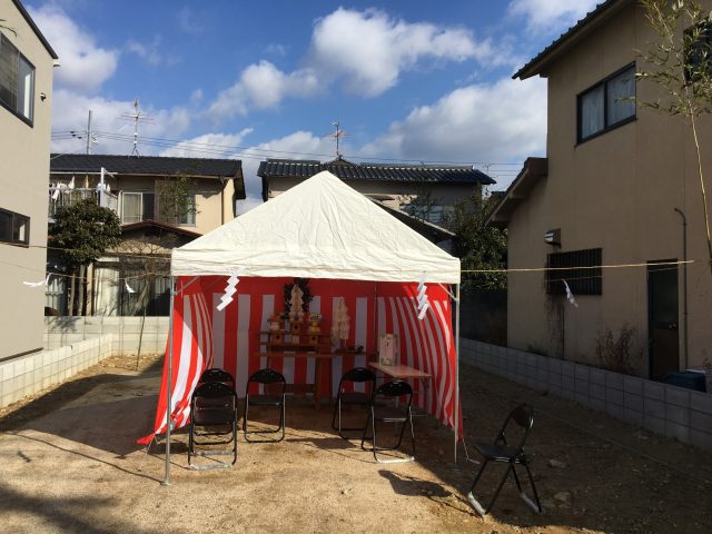 その土地に価値を見いだしご購入頂いたお客様の家の地鎮祭が今朝滞りなく行われました。