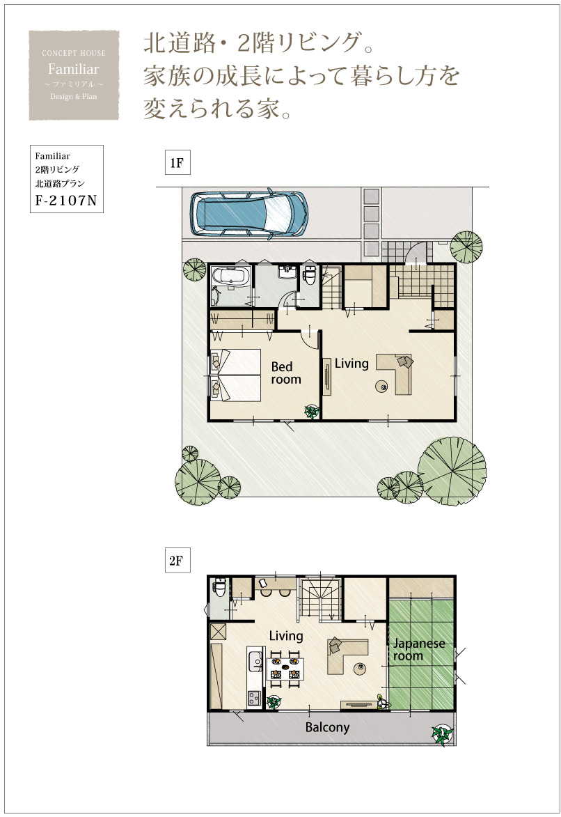 今回は2階リビング・ 北道路・和室のある、家族の成長と共に暮らし方を変えられる F-2107N をご紹介☆
