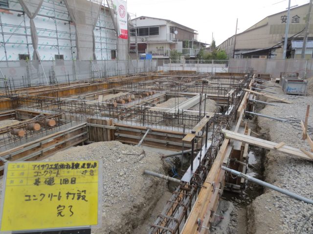 こちらは昨日、第1回目基礎のコンクリート打設を完了しました。