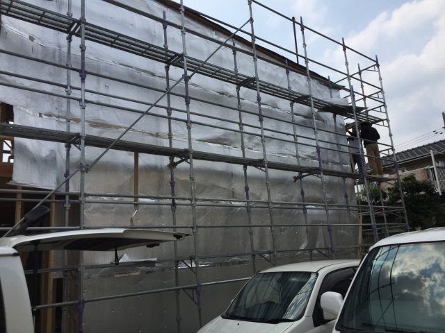 順調に工事は進んで現在遮熱材貼りの真っ最中。