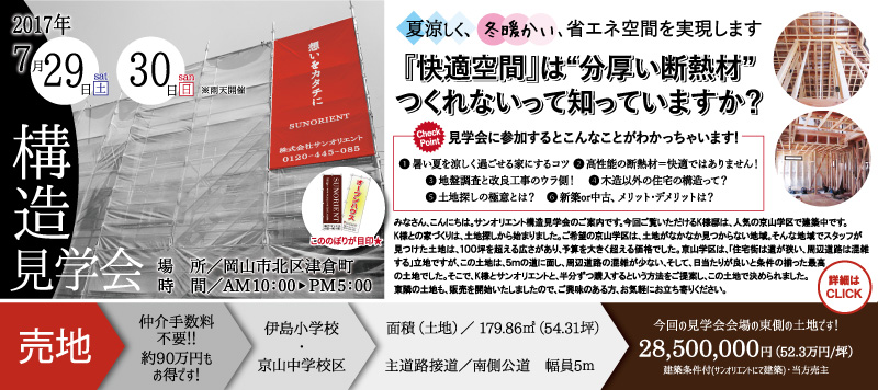 詳細はこちらをクリック→構造見学会開催&売地情報@人気の京山学区!岡山市北区津倉町