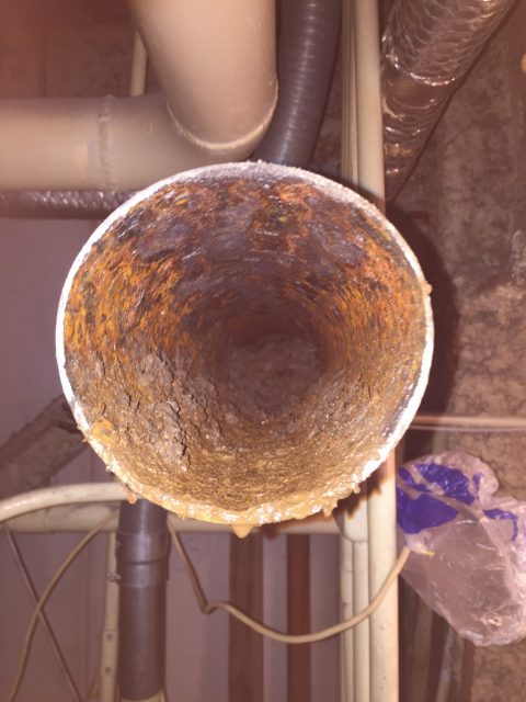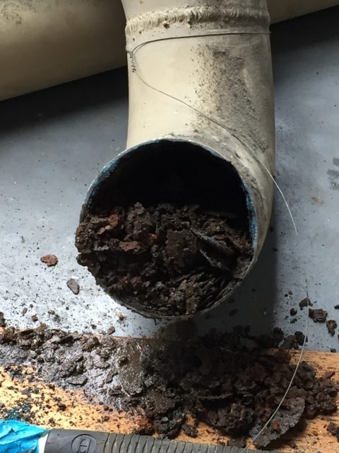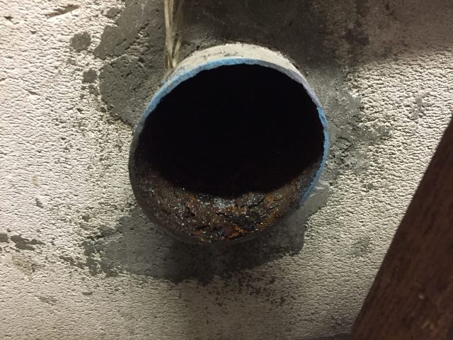 古いビルなので雨水配管は鋼製です、多分内部が錆びて錆が詰まっているようです。