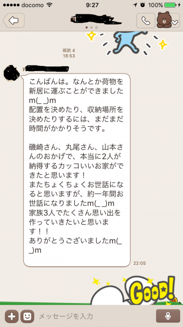 手前味噌になるかもしれませんが、御主人からこんなにうれしいLINEを頂きました。