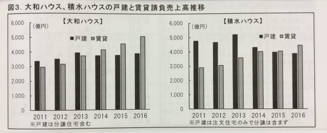 しかし業界最大手2社ともこの数字だけ見るとハウスメーカーと言うよりアパートメーカーですね!?