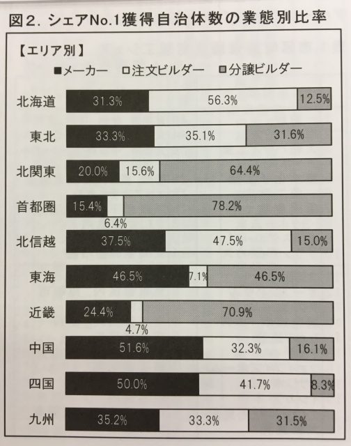 これを見て如実に分かるのは、首都圏と北関東と近畿エリアは分譲ビルダーが圧倒的にシェアを持っていると言う事です。