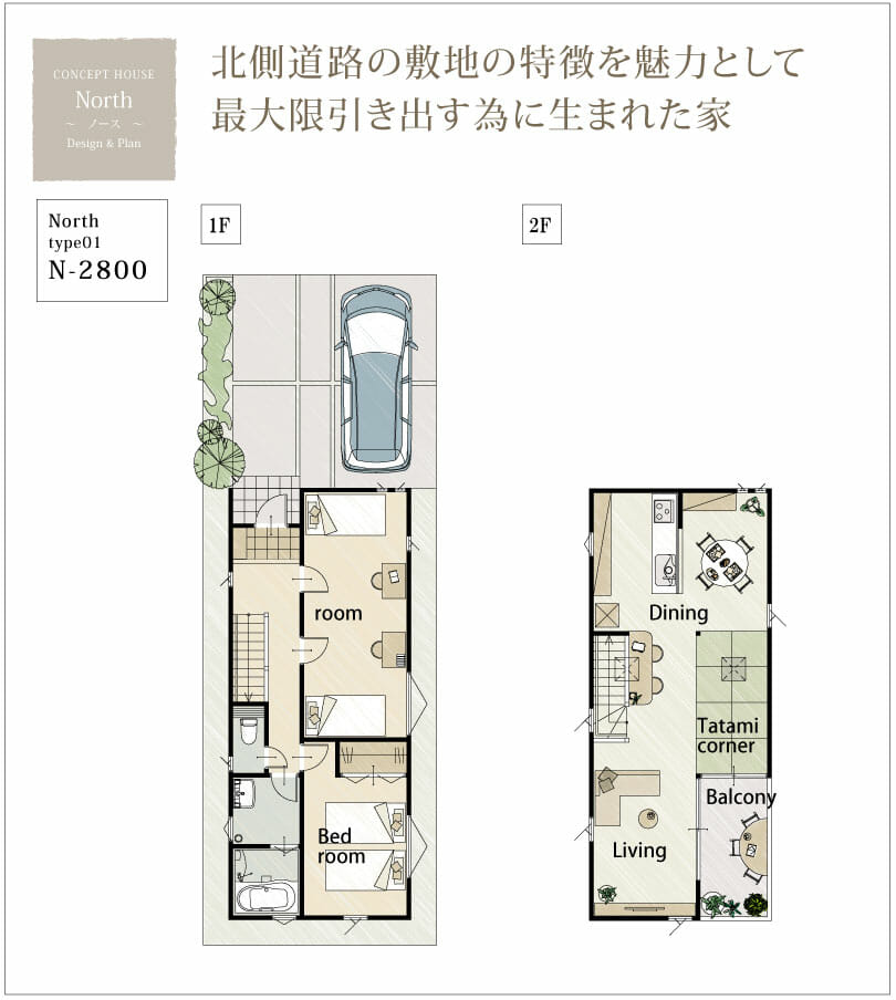 今回は北側道路の敷地専用の North ~ノース~ の間取りプランをご紹介。