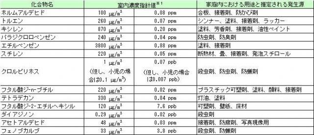 ホルムアルデヒドは安価なため、住宅建材や家具の接着剤や塗料の成分として、広く利用されている一方、室内を汚染する原因物質として、もっとも重要視されています。