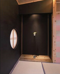 また、黒い幻の漆喰で和室と床の間を格調高く。