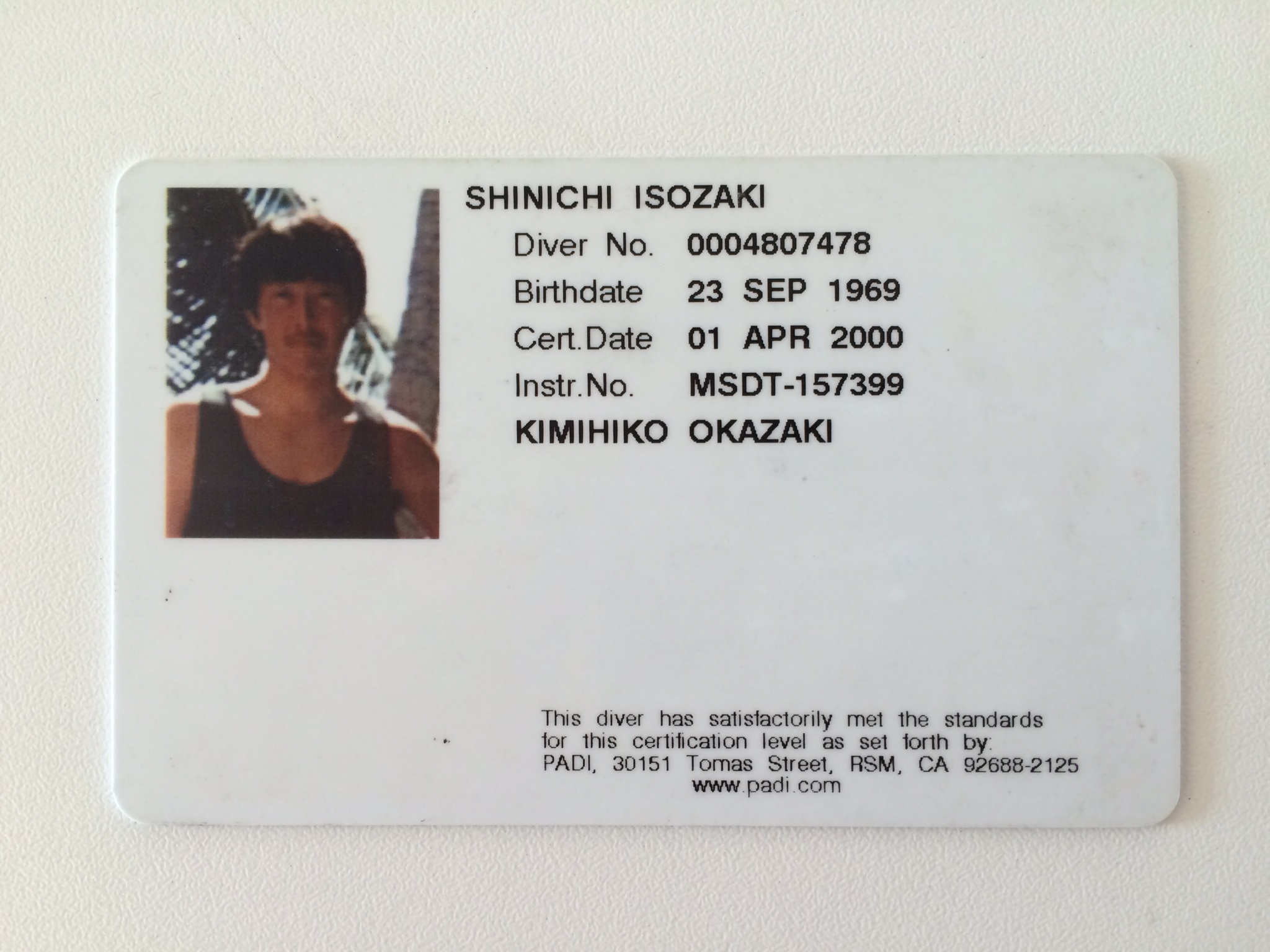 ライセンスの認証はPADIと言う団体なのですが(多分一番メジャーではないかな?)、日本で取得ではないのでPADIJAPANではなくPADIUSAです。