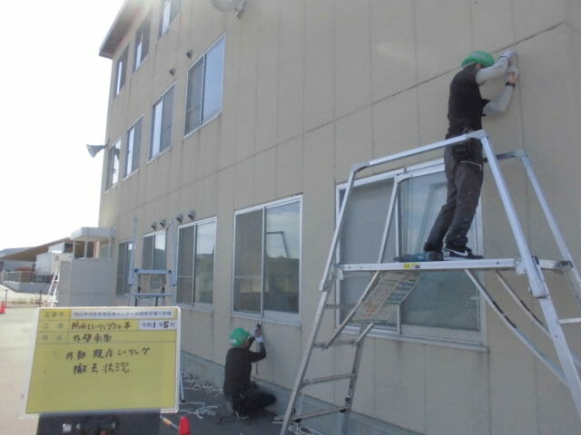▼修繕工事はこちらの建物の1階部分の外壁コーキングの打ち直しと、内装のやり替えです。