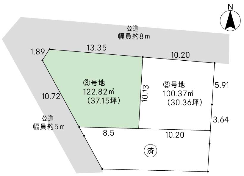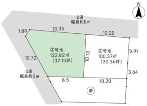 | 接道状況 | 接道:北 幅員8m 公道/南西 幅5m 公道 |