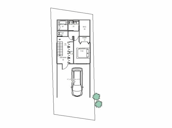 土地を見ただけでは、「家族がゆったり暮らせる家が建つの?駐車スペースは?吹抜けは作れる?何部屋とれる?」など、ご自身の夢のマイホームがどんなふうにここに建つのか?わかりにくいと思いますので、参考プランを掲載しました。ビルトインガレージのあるスキップフロアのお家です。