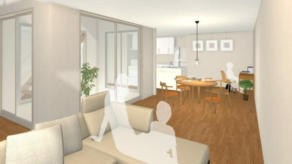 土地を見ただけでは、「家族がゆったり暮らせる家が建つの?駐車スペースは?吹抜けは作れる?何部屋とれる?」など、ご自身の夢のマイホームがどんなふうにここに建つのか?わかりにくいと思いますので、参考プランを掲載しました。
