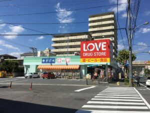 ハピータウン、マルナカ、ラムーマート(最近オープン。ユニクロ、GU、西松屋、ダイソーを併設)が車で5分のところにあります。日用品も食品も揃う「くすりのラブ」は3分です。