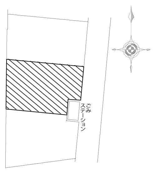 道路沿いにあるゴミステーションが敷地内にかかってるんです。