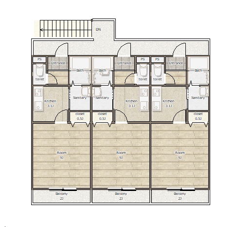 | 間取り | 1K |