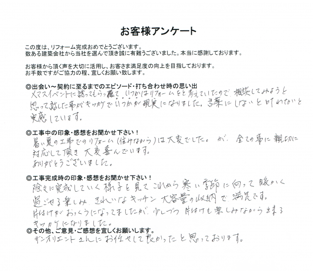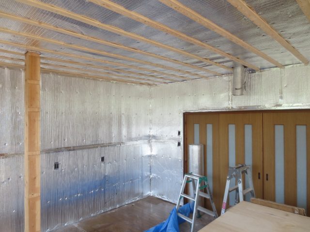 冬の寒さ対策で、LDKには遮熱材リフレクティックスを施工、窓は内窓インプラスを取付、床暖房を設置。そして、愛犬がマーキングしてしまい臭いが気になる、、、というお話しもあり、壁は「幻の漆喰」、をご提案しました。床材に「音響熟成木材」もご提案し、気に入っていだだき、かなり迷われましたが、LDKは床暖房と予算を優先されフローリングに、脱衣場には「音響熟成木材」を採用しました。