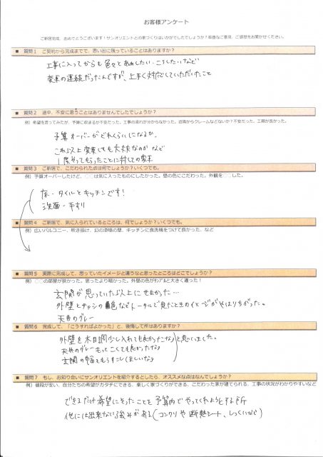 ・お持ちのイメージがはっきりしていたので、それをできるだけ予算内でおさめるよう、何回もお打合せをし、外観、インテリアを決めていきました。