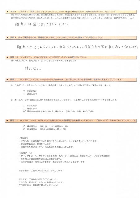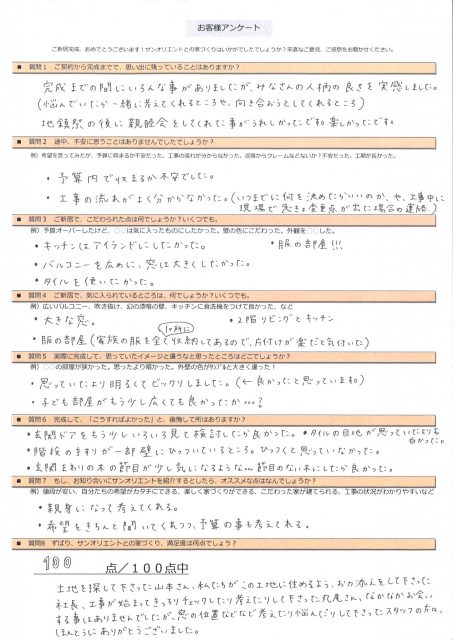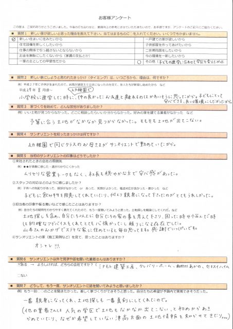 土地を見つけたから、サンオリエントで建てるのかな?と思っていましたが、打合せ中の雑談で「他で土地を買っていても、サンオリエントさんでお願いするつもりでいました。」とお聞きし、とてもうれしく思いました。