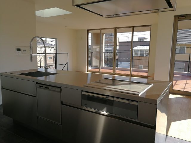 ・オールステンレスのアイランドキッチンご希望で、ナスラック、トーヨー、リクシルなどショールームにご案内しましたが、お手頃価格でデザインが一番お好みだったサンワカンパニーのキッチンを採用しています。