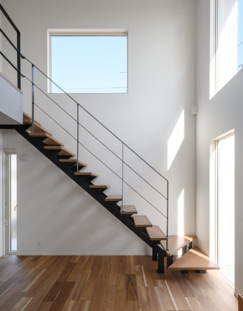 ①以前、ハウスメーカーさんで相談されたときは、鉄骨階段の値段がびっくりするほど高かったそう。確かに既製品に比べると割高になるのですが、「そこまで高くないですよ。」とお話し、鉄骨階段を実現!