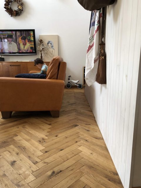 山本「ヘリンボーンの床、節ありなのもいい味ですね。」