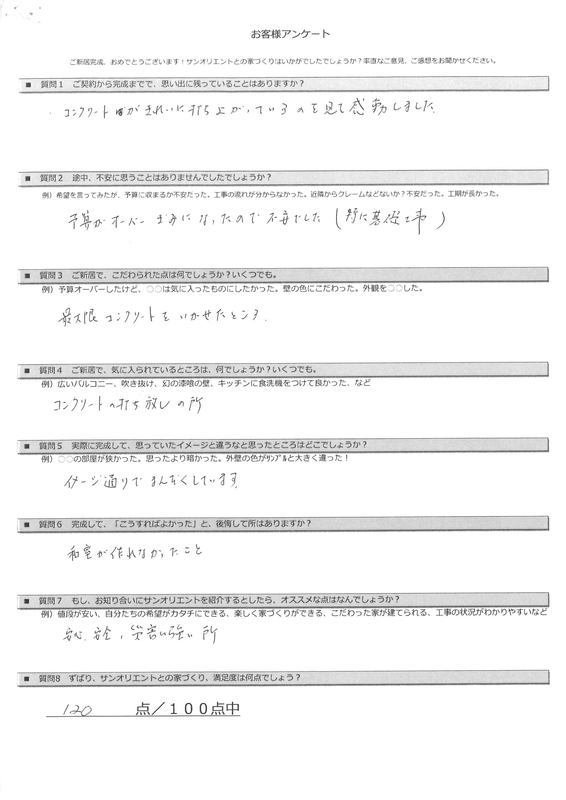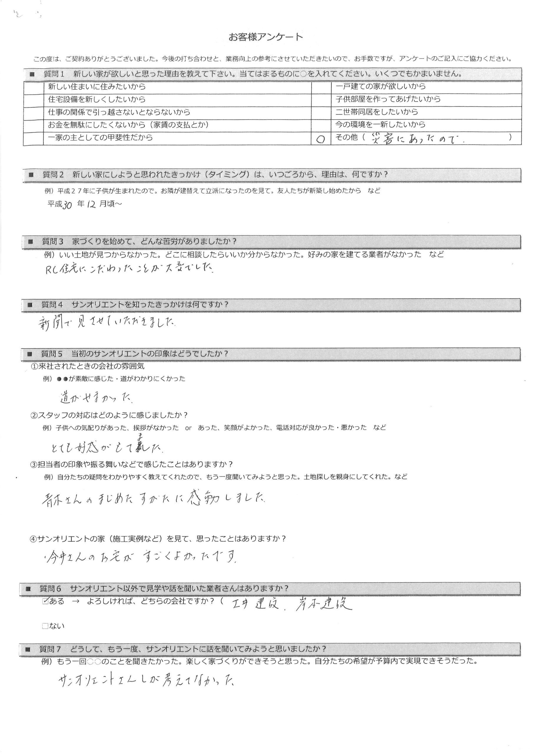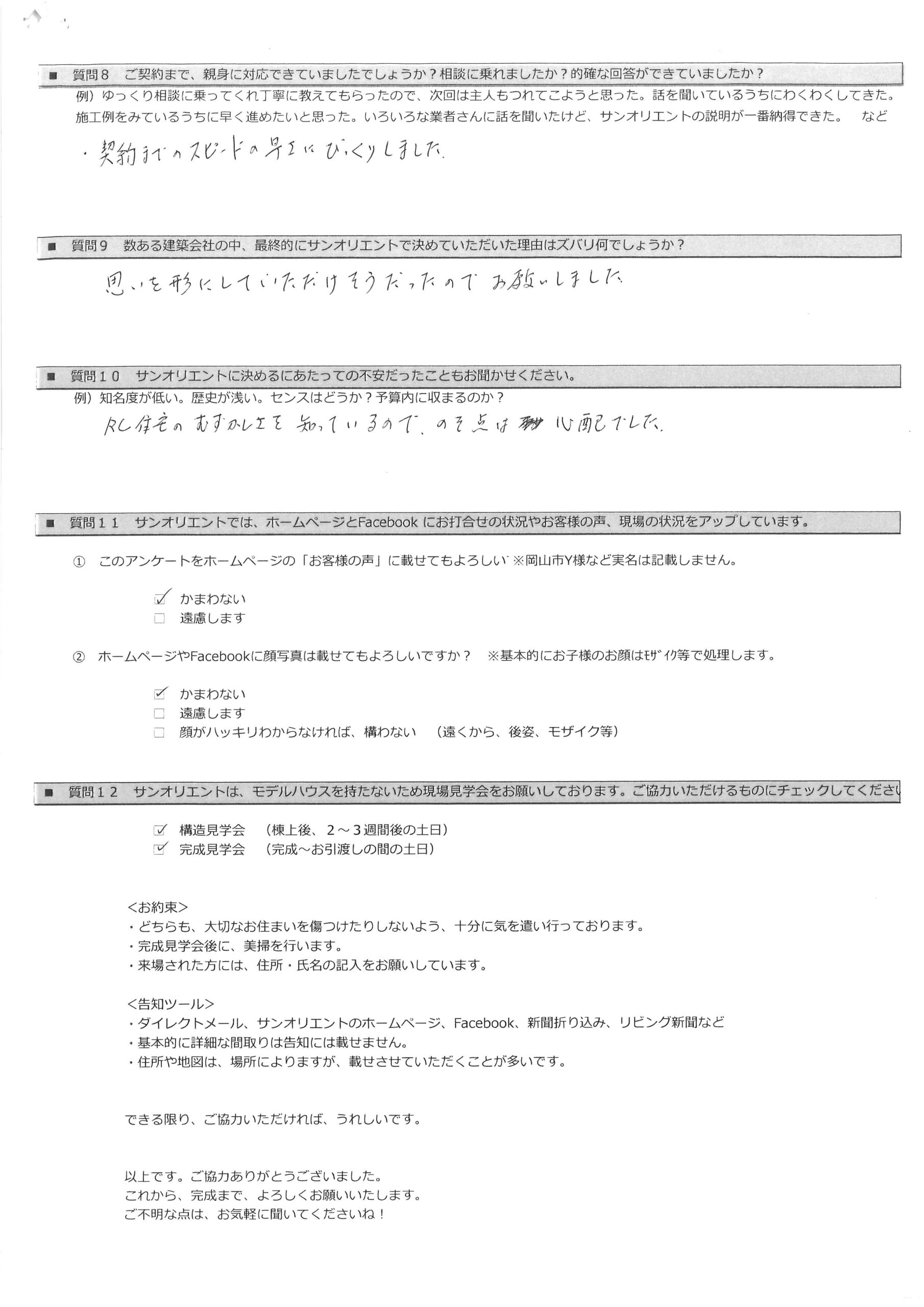 お引渡し後アンケート