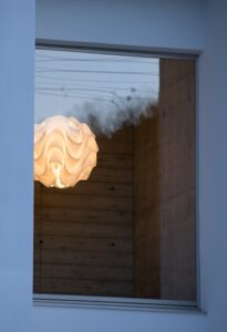 ▼玄関は外から照明が見えるデザインをご希望。