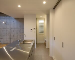 ▼コンクリート打放壁と白い壁を基調とした内装になりました。