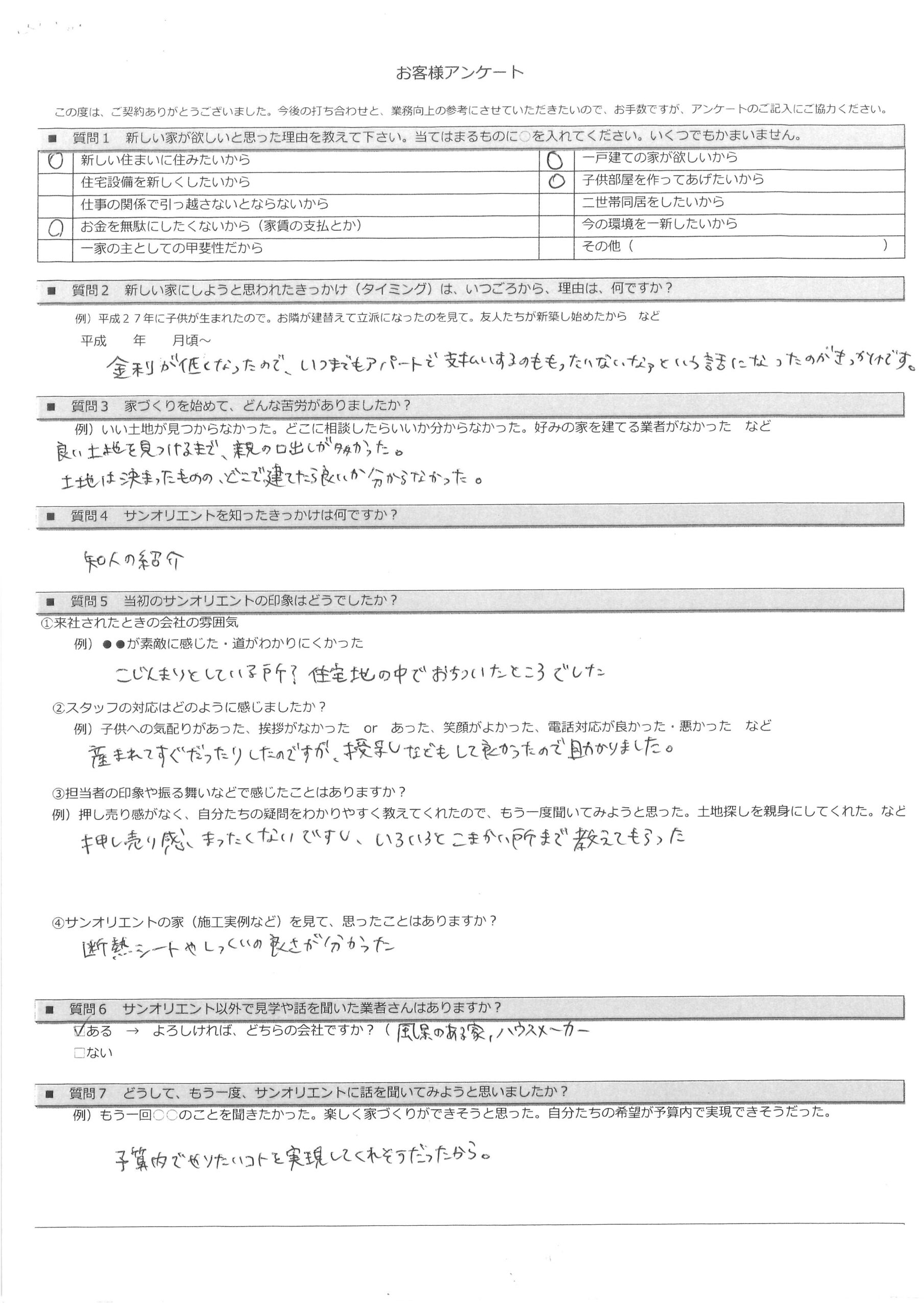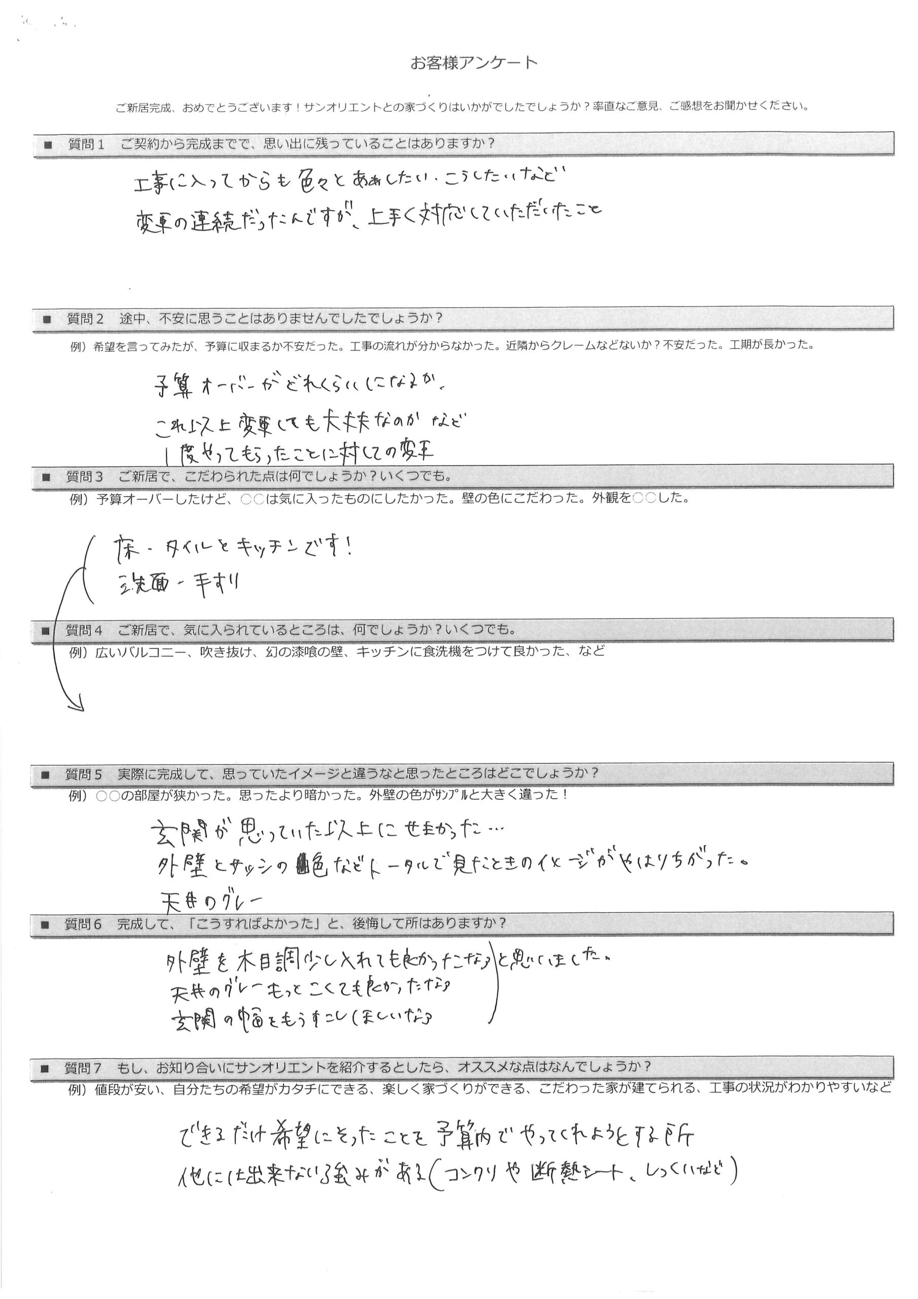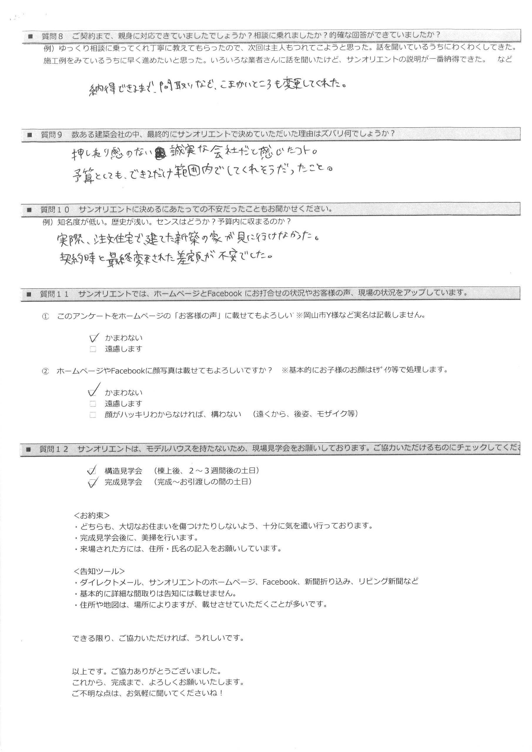 お引渡し後アンケート