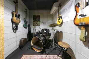 ・防音室は、予算内に収まるようブロック壁を室内に立て、それを、インテリアとしてもカッコよく見えるようにしました。コストダウンするため、天井には吸音材をご自分で貼り付けられました。(難しいところはお手伝いさせていただきました。)