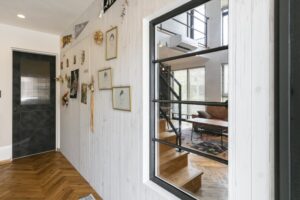 ▼店舗で使われていたアイアン窓がご希望でしたが、住宅では気密性・断熱性能から採用はオススメできないこと、窓を特注するとかなりコストアップすることから、既製品を組合せ、できる限り理想のイメージに近づけていきました