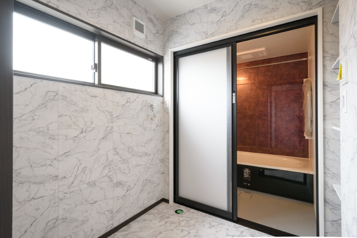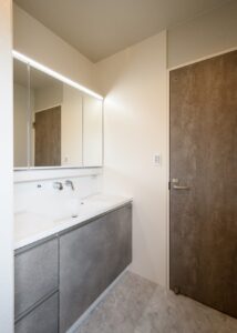 ご要望を叶えるために、浴室を2階へ配置し、脱衣場を広くとり、物干し兼脱衣場→ウォークインクローゼットという間取りをご提案しました。