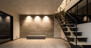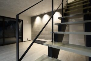 当初は、ソファを置かず、リビングが一段下がったイメージをご希望されていましたが、今回の間取りの場合、スペースが有効活用できないので、諦めていただいたり、鉄骨階段をあきらめていただいたりと、予算との兼ね合いで100%ご希望がカタチにできなかったところもあります。