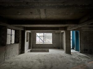 2階と3階のコンクリート床の一部の抜き、スケルトンの内階段を新設をご希望。
