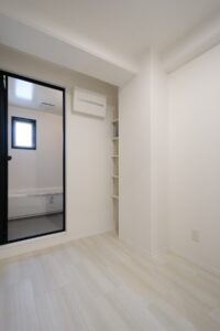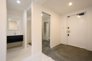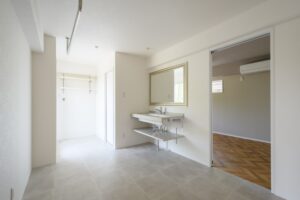 実際完成してみると、天井が低いから閉塞感があるかと思っていたが、問題なく、開放的な空間で、洗面台・壁・タイルフロア等こだわりを反映できた家になりました